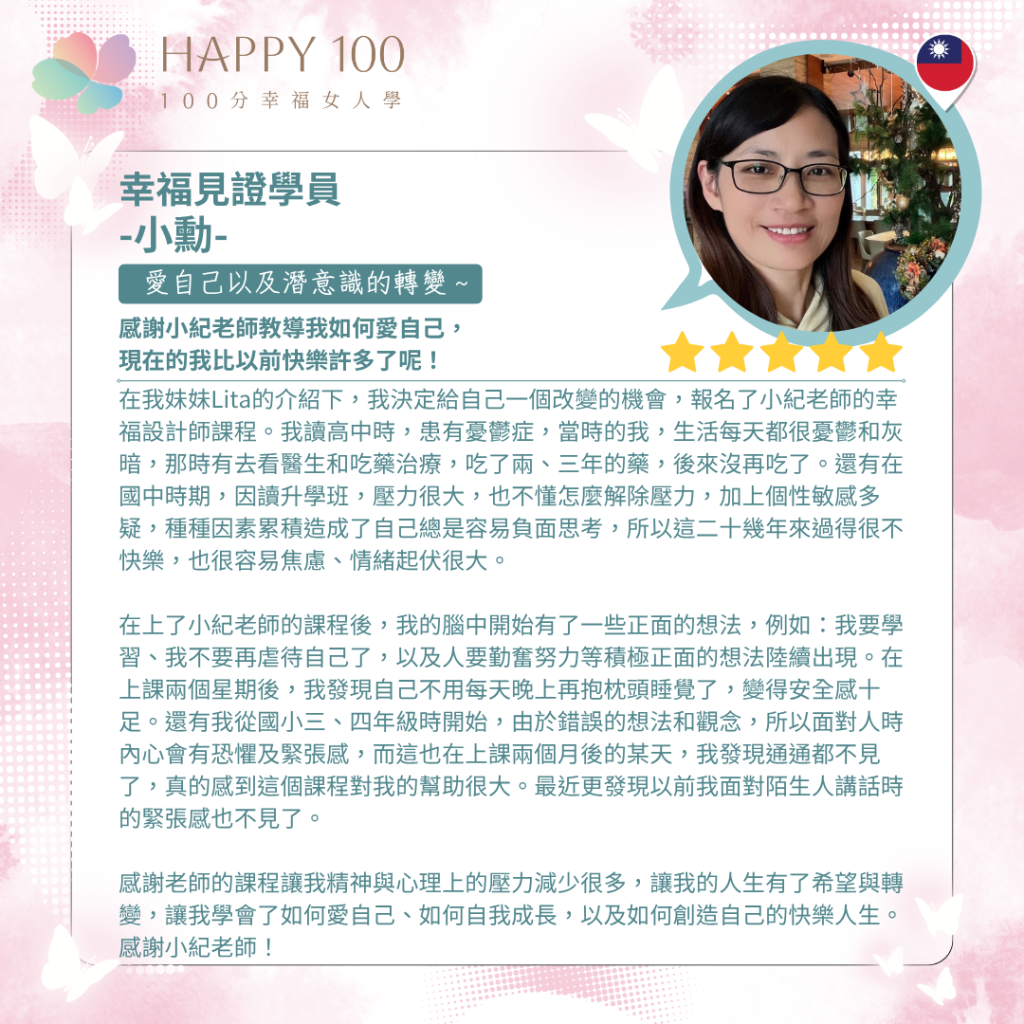 直到接觸小紀老師的課程,生命才開始往完全不同的方向流動。